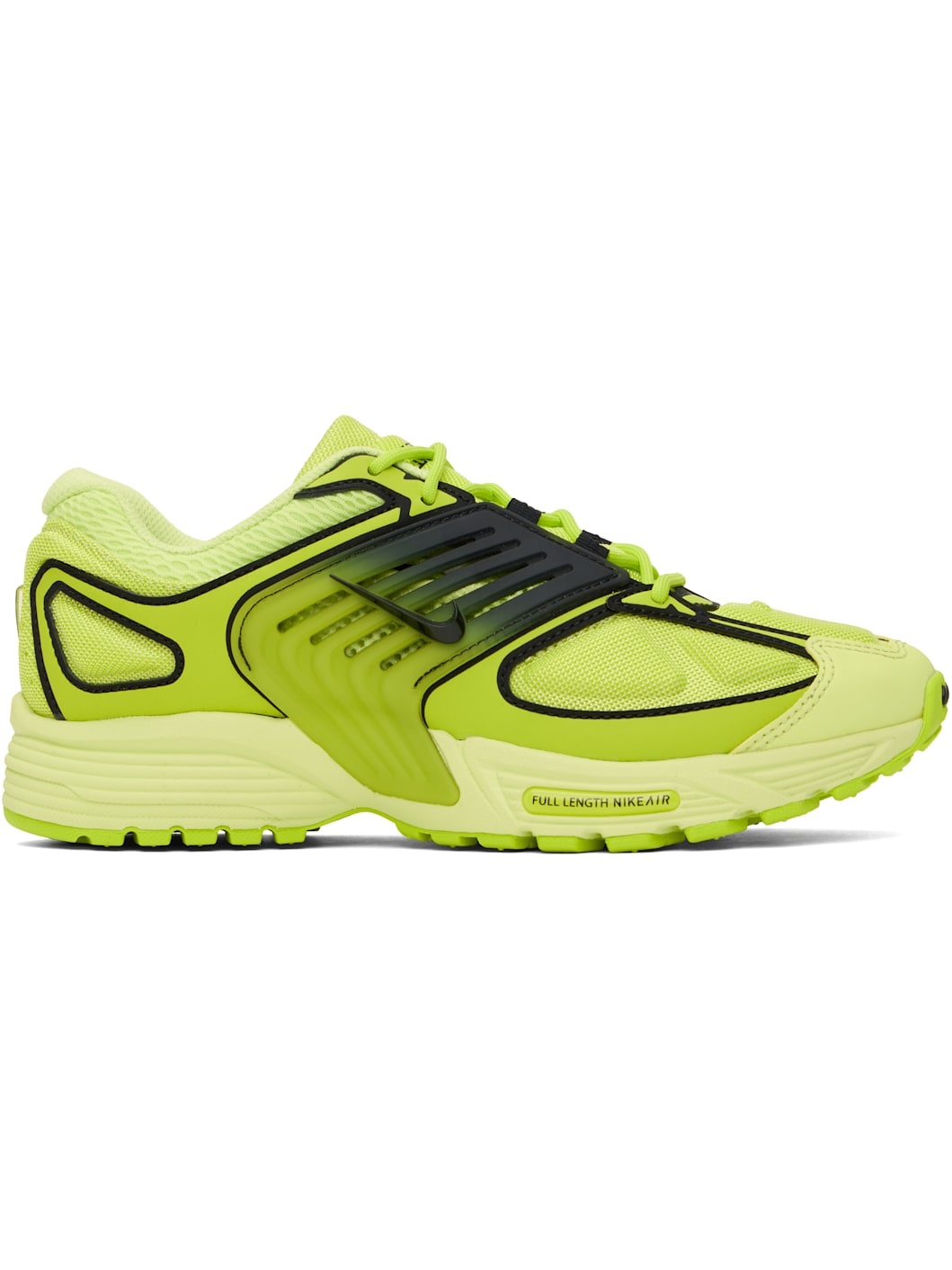 Low-top mesh and buffed leather sneakers in yellow. · Swoosh embossed at vamp and sides · Lace-up closure · Text printed at padded tongue · Padded collar · Rubberized overlay at sides · Mesh lining · Air Sole unit at foam rubber midsole · Treaded rubber sole Please note that this item may be shipped only within North America. Supplier color: Light lemon twist/Cyber/Black Upper: textile, leather. Sole: rubber. Made in Viet Nam 252011M237258