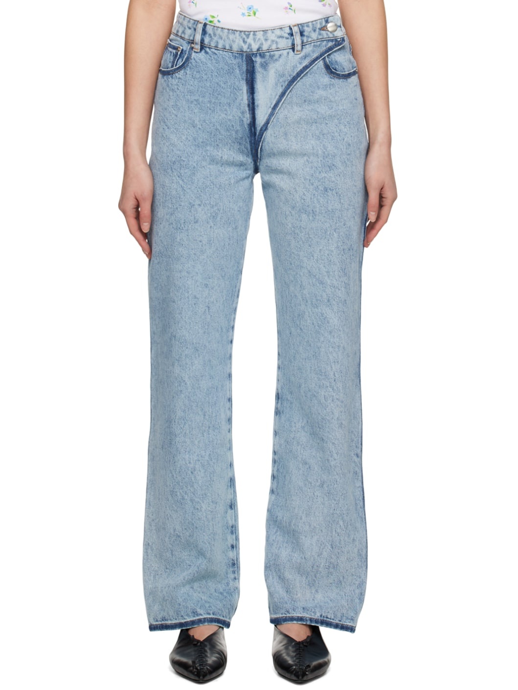 Straight-leg non-stretch denim jeans. Fading throughout. · Belt loops · Five-pocket styling · Button tab at zip-fly · Logo embroidered at back pocket · Logo-engraved silver-tone hardware · Contrast stitching in yellow Supplier color: Washed-out denim Body: 100% cotton. Lining: 80% polyester, 20% cotton. Made in Morocco 231475F069000