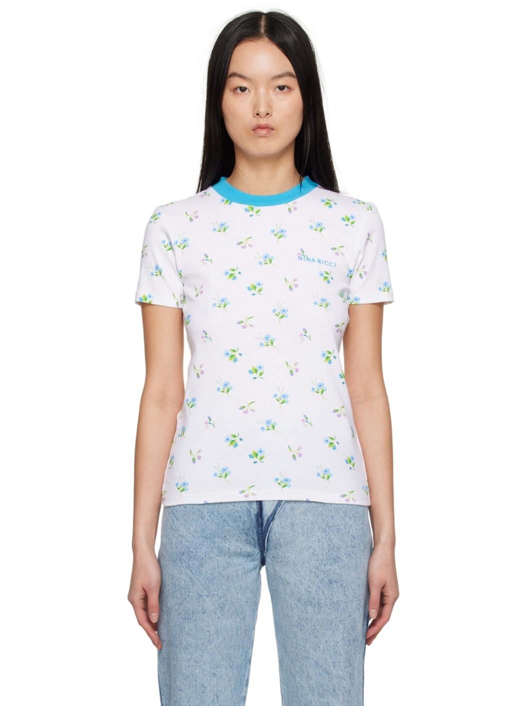 Cotton jersey T-shirt. Floral pattern printed throughout. · Rib knit crewneck · Logo embroidered at chest Supplier color: White/Blue 100% cotton. Made in Portugal 231475F110000