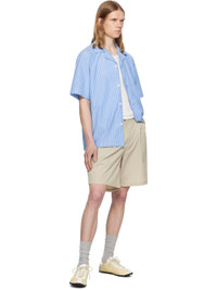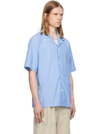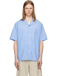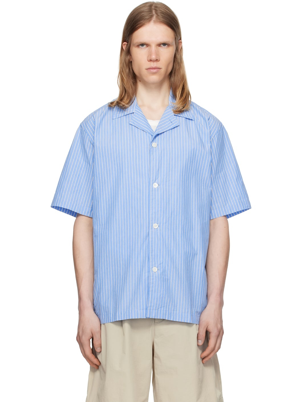 Lightweight cotton poplin shirt. Stripes throughout. · Open spread collar · Button closure · Mother-of-pearl hardware Supplier color: Navy 100% cotton. Made in India 251116M192007