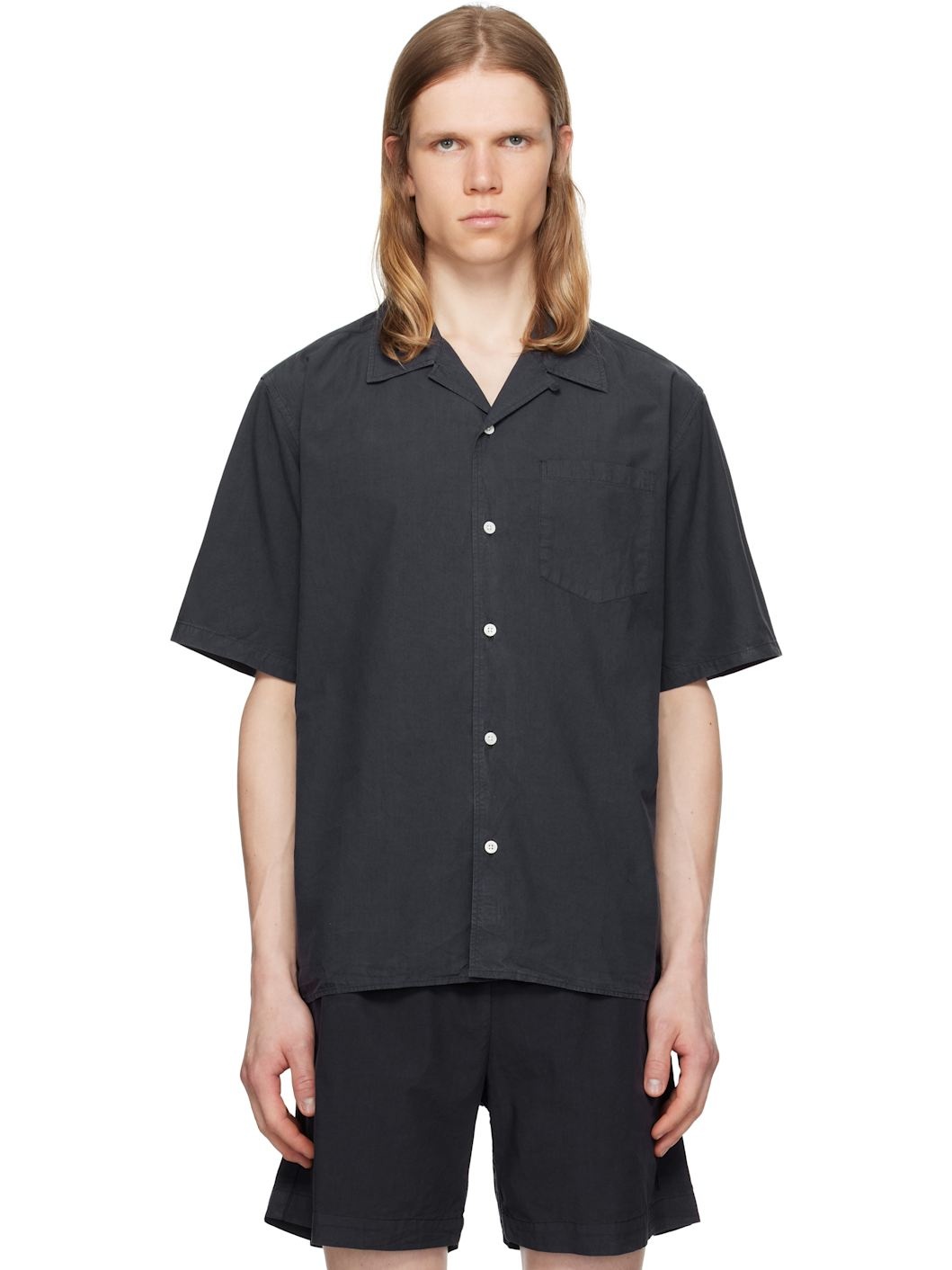 Garment-dyed cotton- and tencel-blend poplin shirt. · Open spread collar · Button closure · Patch pocket · Mother-of-pearl hardware Supplier color: Dark navy 50% cotton, 50% tencel. Made in Portugal 252116M192007