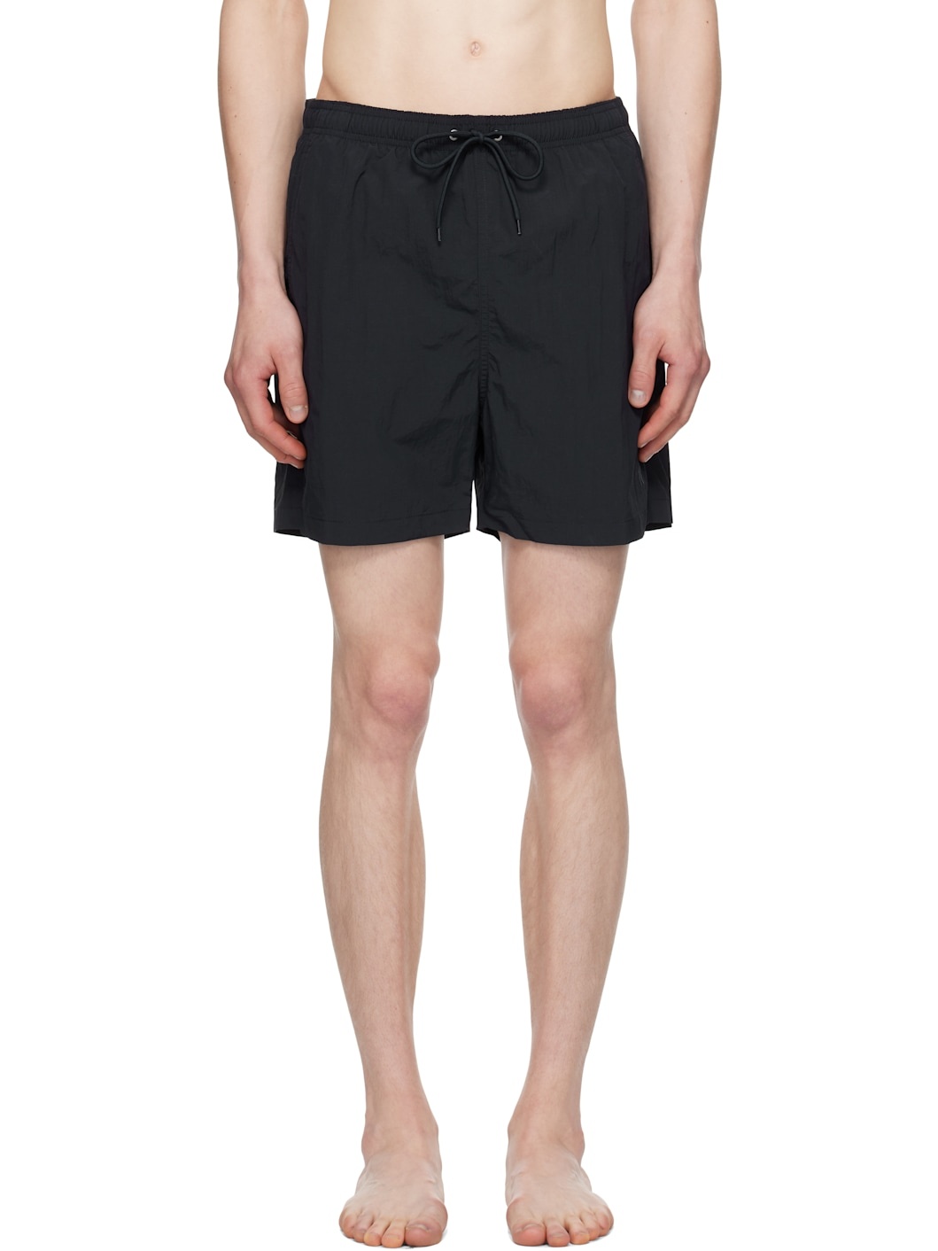Recycled nylon taffeta swim shorts. · Drawstring at elasticized waistband · Three-pocket styling · Logo embroidered at cuff · Vented outseams · Eyelets at back waist · Partial brief-style mesh lining Supplier color: Dark navy Body: 100% recycled polyamide. Lining: 100% polyester. Made in Viet Nam 252116M208002