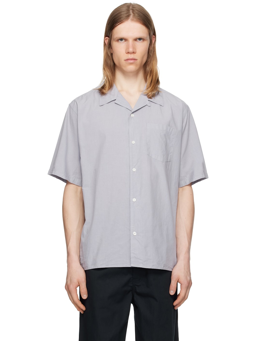 Garment-dyed cotton- and tencel-blend poplin shirt. · Open spread collar · Button closure · Patch pocket · Mother-of-pearl hardware Supplier color: Crocus purple 50% cotton, 50% tencel. Made in Portugal 252116M192008