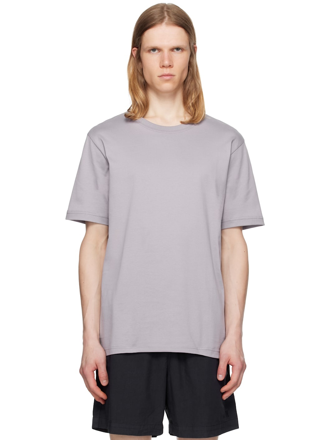 180 gsm organic cotton jersey T-shirt. · Rib-knit crewneck · Logo flag at side seam Supplier color: Crocus purple 100% organic cotton. Made in Portugal 252116M213005