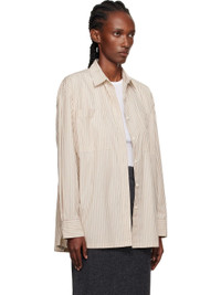 Cotton poplin shirt. · Stripes throughout · Spread collar · Button closure · Patch pockets at chest · Vented side seams · Adjustable barrel cuffs Supplier color: Beige 100% cotton. Made in South Korea 252814F109000