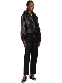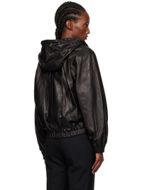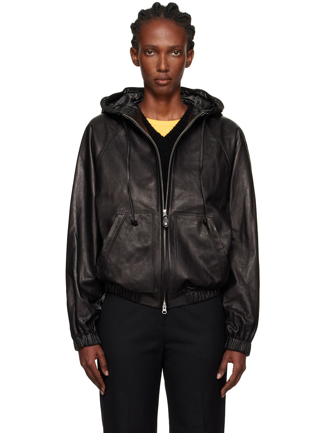 Grained lambskin jacket. · Drawstring at hood · Two-way zip closure · Patch pockets at waist · Elasticized hem and cuffs · Raglan sleeves · Full satin lining Supplier color: Black Body: 100% lambskin. Lining: 100% polyester. Made in South Korea 252814F064002