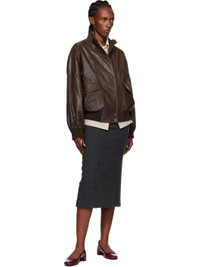 Grained leather flight-style jacket. · Stand collar · Concealed zip closure with press-stud placket · Flap pockets at waist · Rib-knit wool-blend hem and cuffs · Welt pocket at interior · Full satin lining Supplier color: Vintage Brown Body: 100% leather. Lining: 100% polyester. Trim: 46% wool, 39% nylon, 15% polyester. Made in South Korea 252814F064001