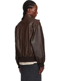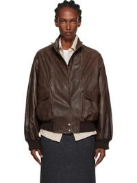 Brown Stand Collar Leather Blouson Jacket