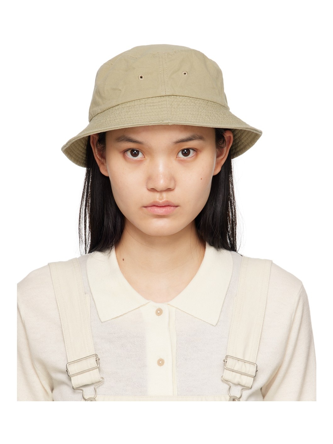 Cotton canvas bucket hat in khaki. · Quilted brim · Embroidered eyelets at crown · Logo flag at back face · Unlined Supplier color: Khaki 100% cotton. Made in South Korea 232814F015000