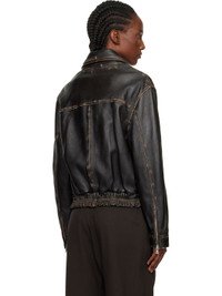 Brown Clint Cropped Leather Bomber Jacket
