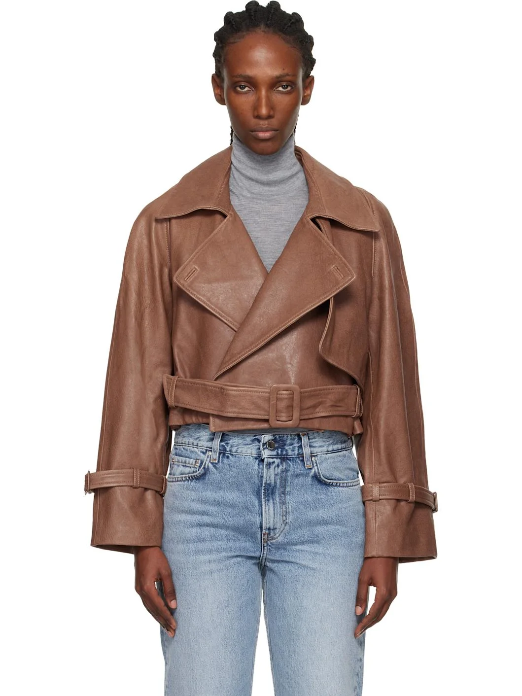 Hatti cropped belted leather jacket Camel