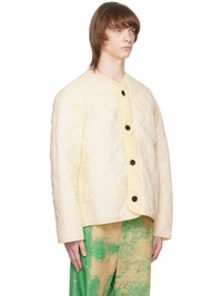 Quilted nylon-blend ripstop jacket. · Y-neck · Button closure · Seam pockets · Cutout at armscyes · Logo patch at back collar Supplier color: Pollen Body: 80% polyamide, 20% polyester. Fill: 100% polyester. Made in Italy 231637M180001