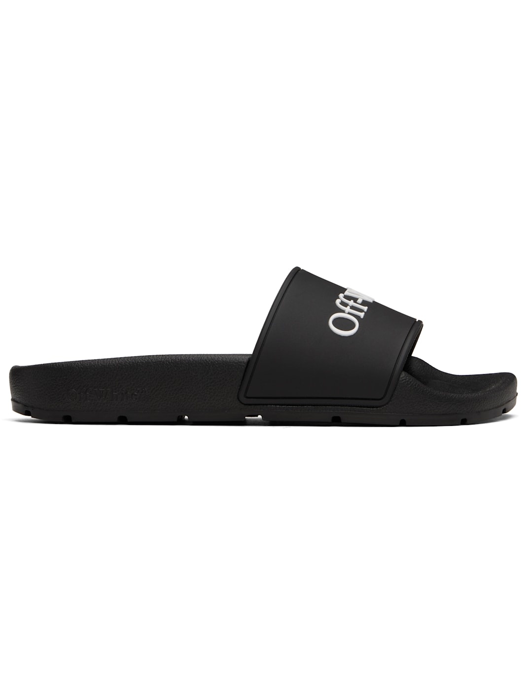 Rubber pool slides in black. · Logo embossed at strap and outer side · Logo embossed at molded footbed · Treaded foam rubber sole Supplier color: Black/White Rubber. Made in Italy 251607F124001