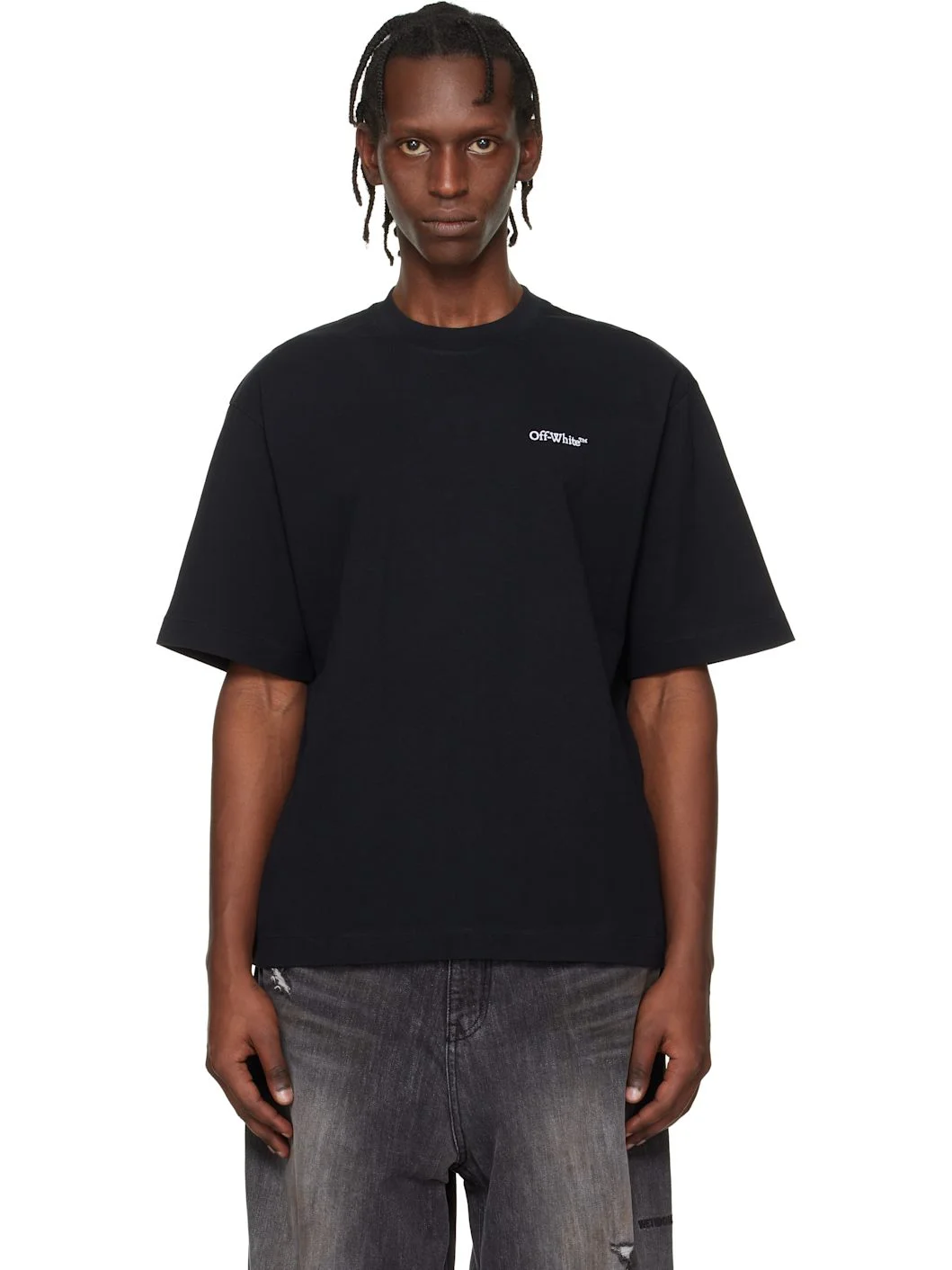 Cotton jersey T-shirt. · Rib-knit crewneck · Logo embroidered at chest · Vented side seams · Dropped shoulders · Logo and graphic printed at back Supplier color: Black/White Body: 100% cotton. Trim: 95% cotton, 5% elastane. Made in Portugal 252607M213012