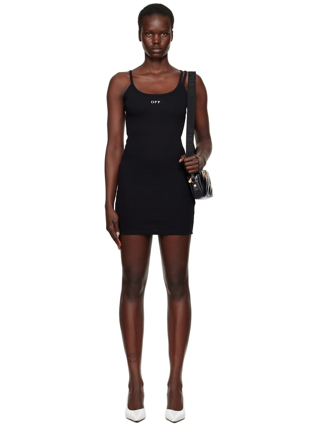 Black 'Off' Stamp Rib Basic Tank Minidress