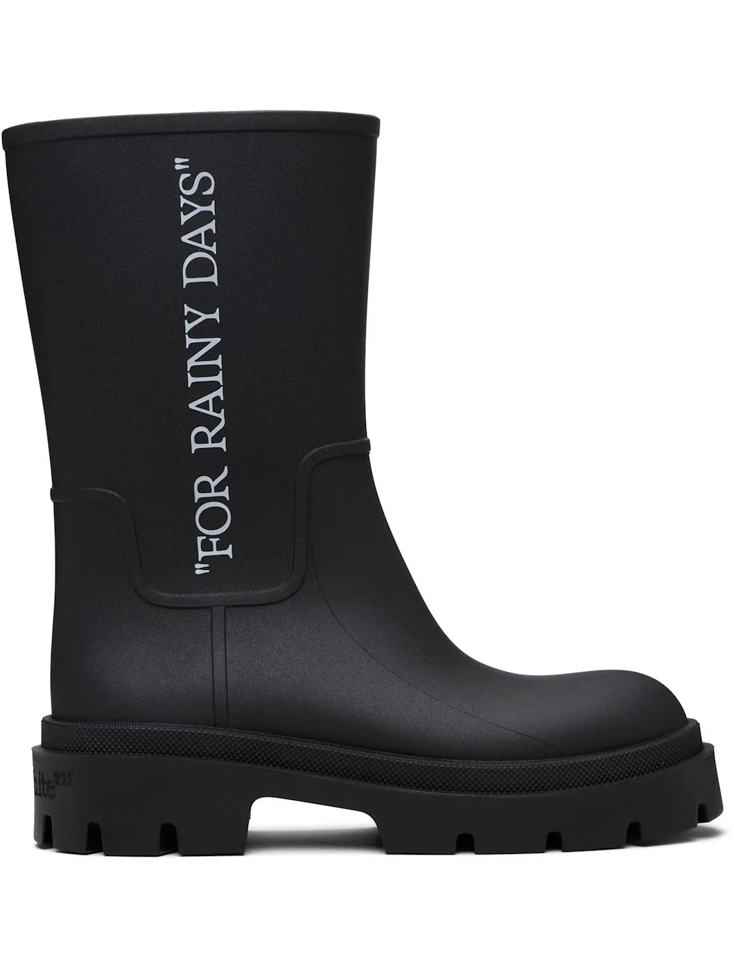 Mid-calf rubber boots. · Text printed at outer side · Logo embossed at heel · Textile lining · Treaded rubber sole Supplier color: Black/White Rubber. Made in Italy 252607F114000