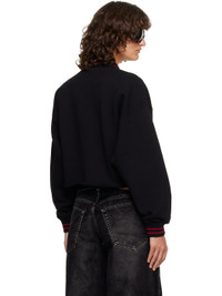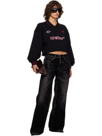French terry sweatshirt. · Striped rib-knit spread collar and cuffs · Rib-knit V-neck · Embroidered logos and text at front · Rolled raw edge at cropped hem · Dropped shoulders Supplier color: Black/Red Dahlia Body: 100% cotton. Trim: 95% cotton, 5% elastane. Made in Portugal 252607F098001