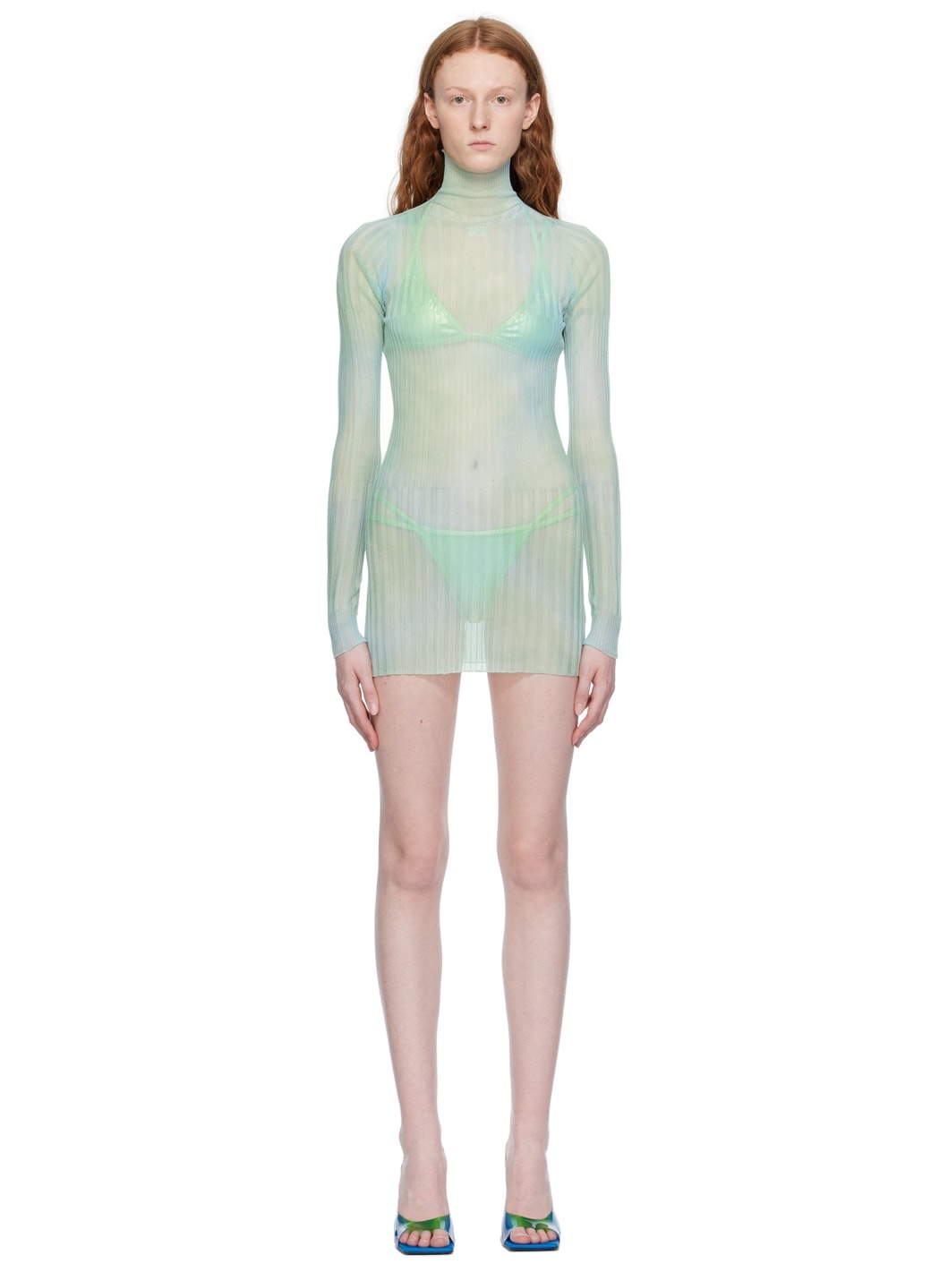 Sheer rib knit nylon-blend dress. Tie-dye effect throughout. · Turtleneck · Unlined Each item is unique. Please note that coloration and finishings may vary. Supplier color: Light blue 70% polyamide, 30% polyester. Made in Italy 231607F052013