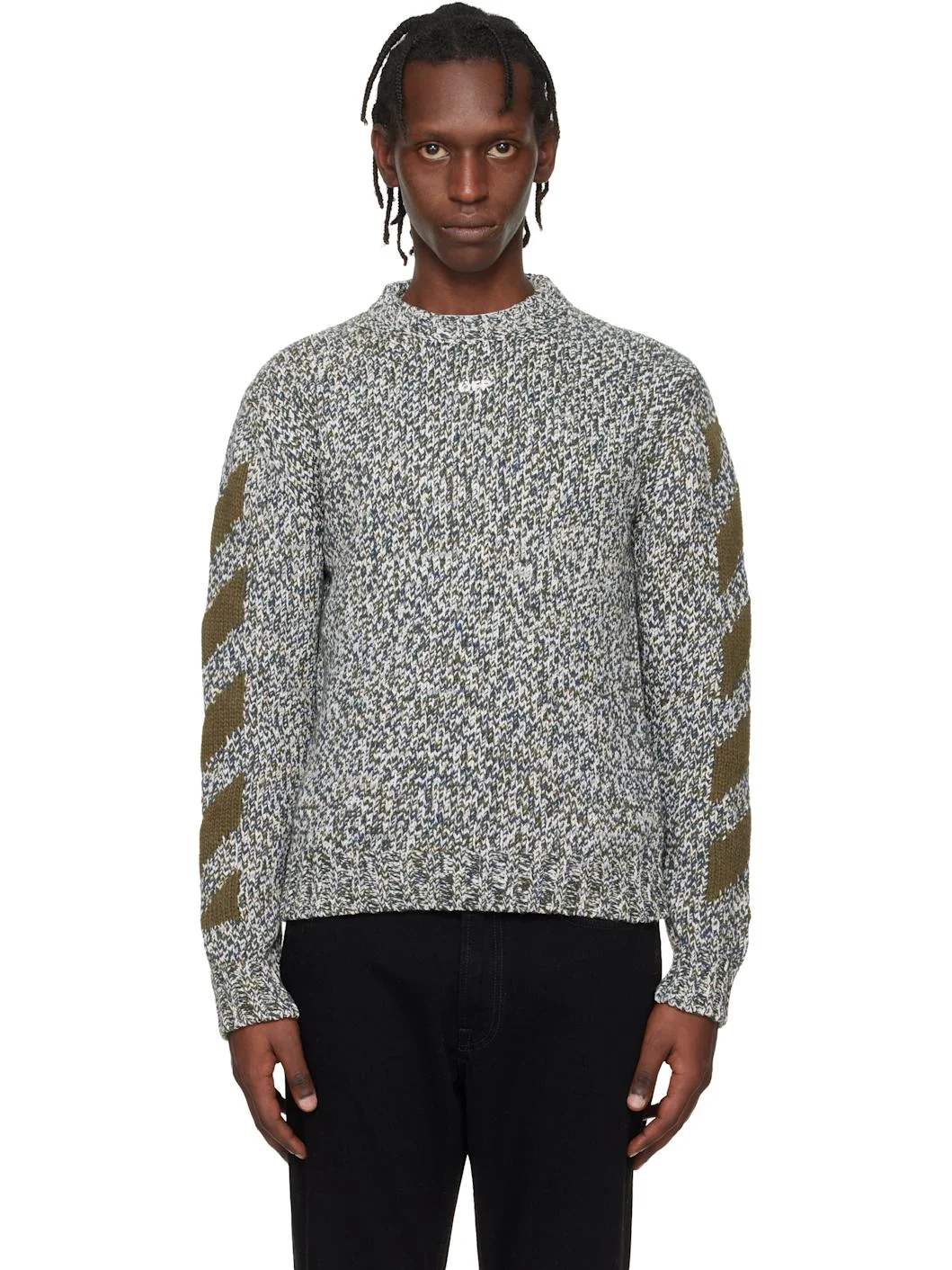 Gray & Khaki Diagonal Arrow Mouliné Knit Crewneck Sweater