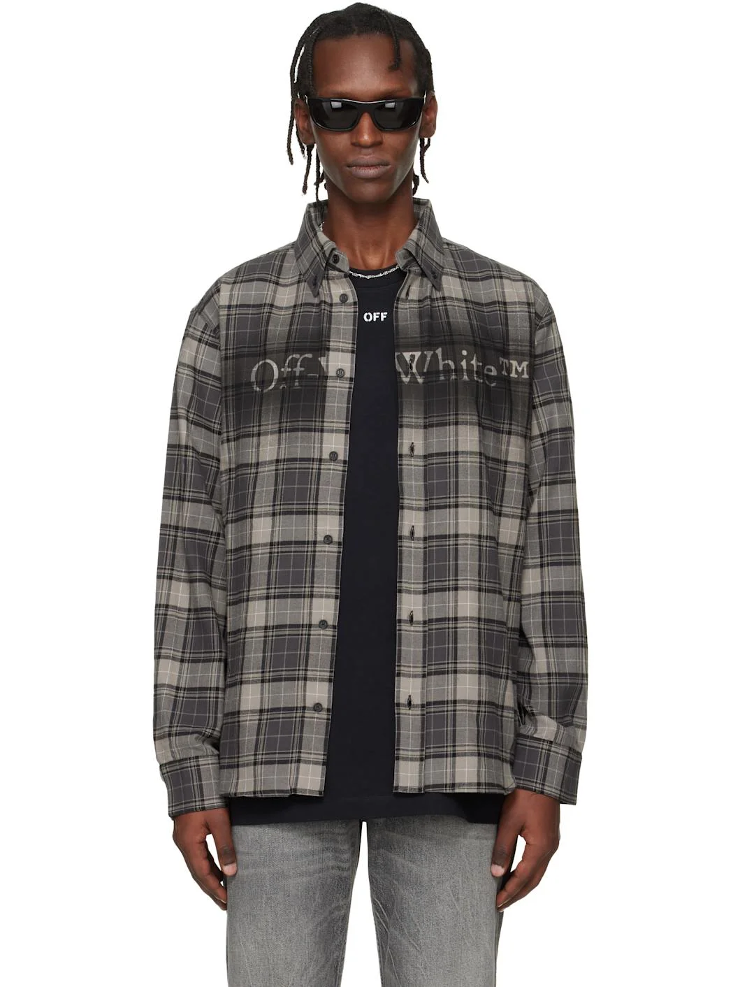 Cotton flannel shirt. · Check pattern throughout · Button-down spread collar · Button closure · Logo printed at chest · Shirttail hem · Buttoned barrel cuffs Supplier color: Dark Grey/Black 100% cotton. Made in Italy 252607M192007