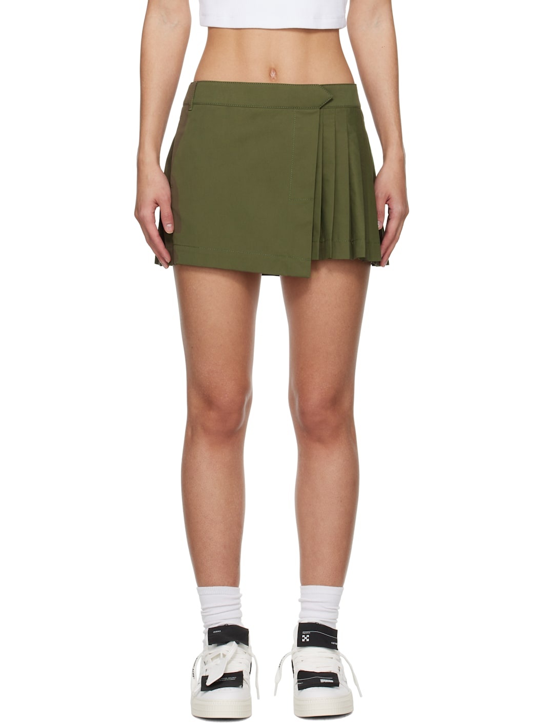 Cotton twill miniskirt. Knife pleats throughout. · Wrap construction · Belt loops · Hook-eye fastening at waistband · Three-pocket styling · Logo flag at side seam Supplier color: Green Body: 100% cotton. Lining: 100% viscose. Made in Italy 251607F090000