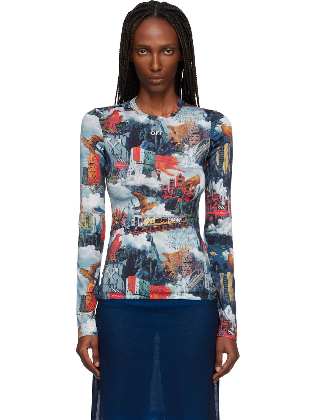 Stretch mesh T-shirt. · Graphic pattern throughout · Crewneck · Printed logo at chest Supplier color: AI Print White 86% polyamide, 14% elastane. Made in Italy 252607F110003