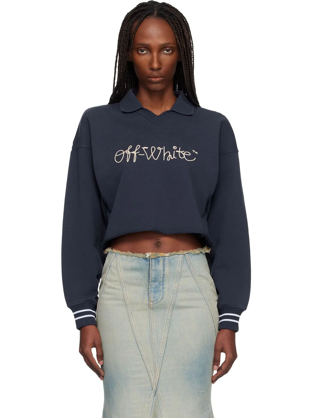 Cotton French terry sweatshirt. · V-neck with spread collar · Rib-knit collar and cuffs · Embroidered logo at chest · Raw edge rolled hem · Dropped shoulders Supplier color: Dark Sapphire/Double Cream Body: 100% cotton. Trim: 95% cotton, 5% elastane. Embroidery: 100% polyester. Made in Portugal 252607F108000