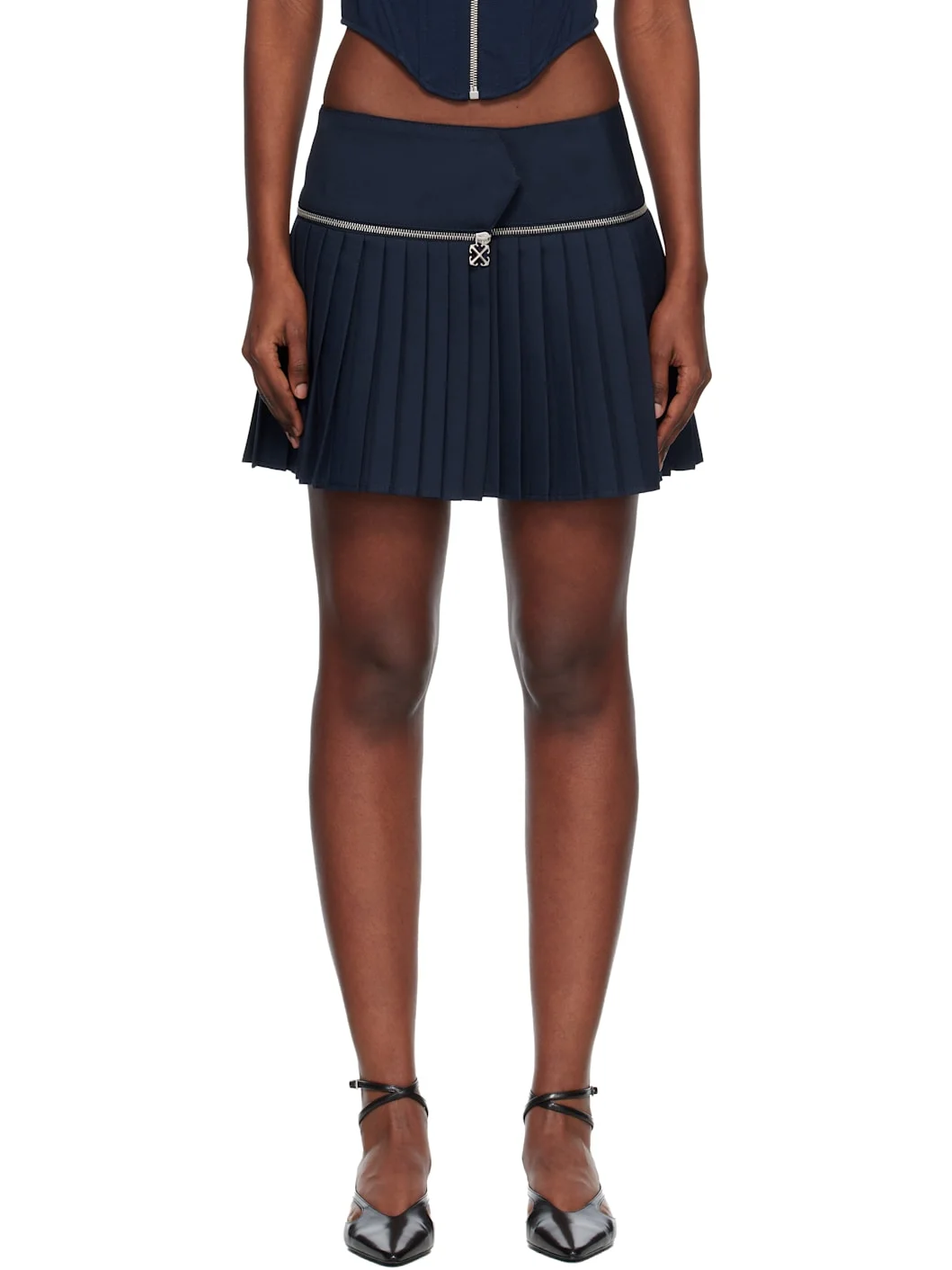 Wool-blend twill miniskirt. · Knife pleats throughout · Press-stud closure at waist · Zip track applique at waist · Logo patch at back waist · Logo-engraved silver-tone hardware Supplier color: Blue Iris/No Color 49% wool, 29% polyester, 22% lyocell. Made in Italy 252607F090000