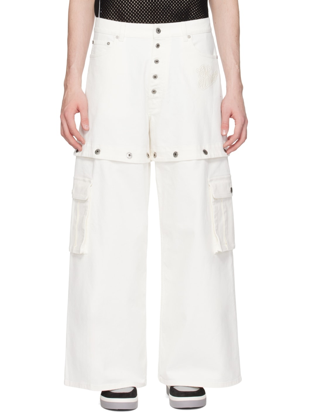 Relaxed-fit non-stretch denim cargo pants. Button detailing throughout. · Belt loops · Five-pocket styling · Button-fly · Logo embroidered at front · Detachable panel at legs for alternate styling · Cargo pocket at outseams · Leather logo patch at back waistband · Logo-engraved silver-tone hardware · Contrast stitching in tan Supplier color: Raw white 100% cotton. Made in Italy 241607M188000