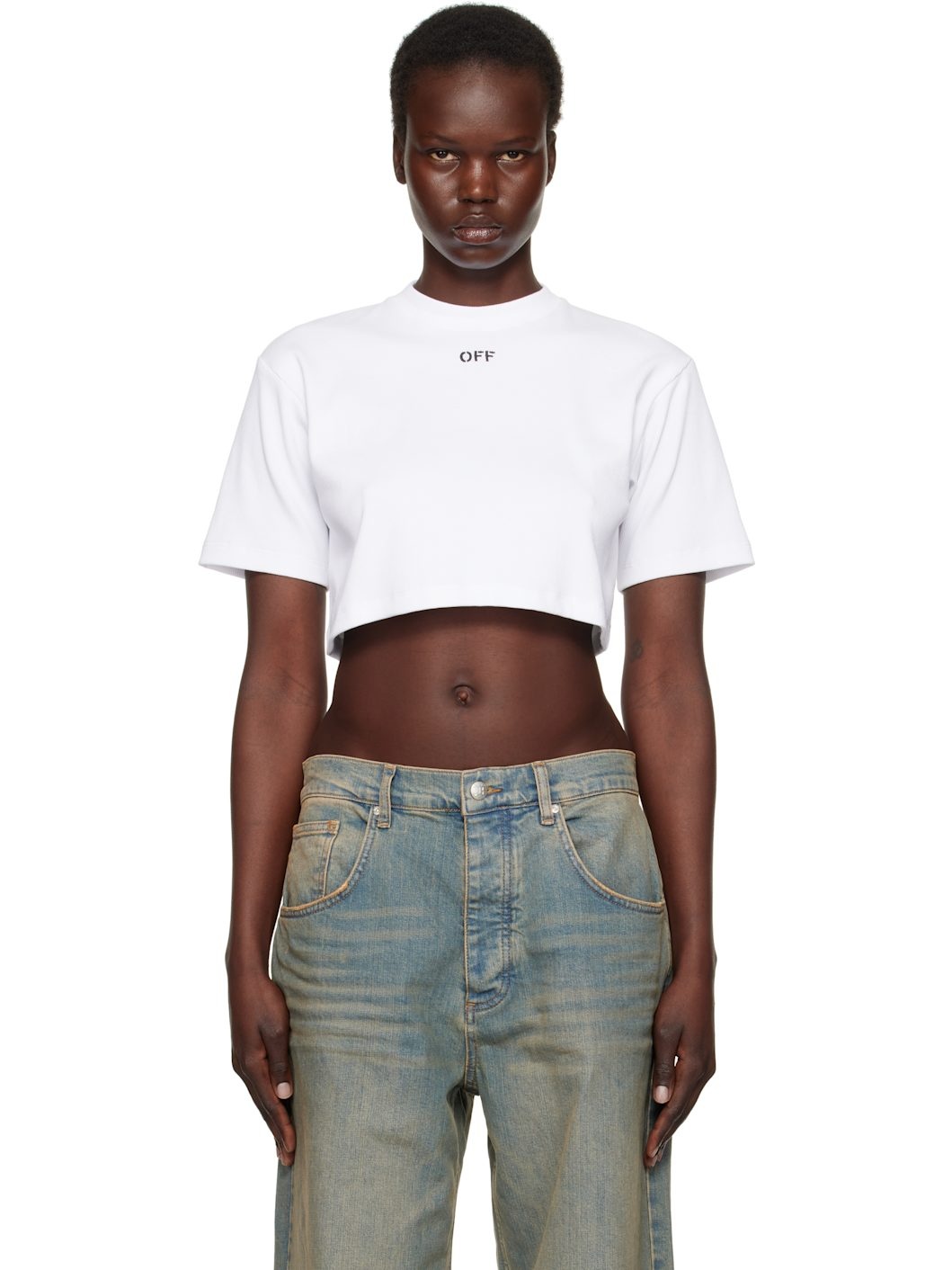 Stretch cotton ribbed jersey T-shirt. · Crewneck · Logo embroidered at chest · Cropped hem Supplier color: White/Black 98% cotton, 2% elastane. Made in Italy 251607F110015