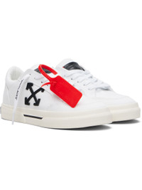 Low-top canvas sneakers. · Zip-tie at lace-up closure · Leather logo patch at padded tongue · Padded collar · Logo applique at outer side · Logo printed at heel · Treaded rubber sole Supplier color: White Black Upper: textile, leather. Sole: rubber. Made in Indonesia 252607F128001