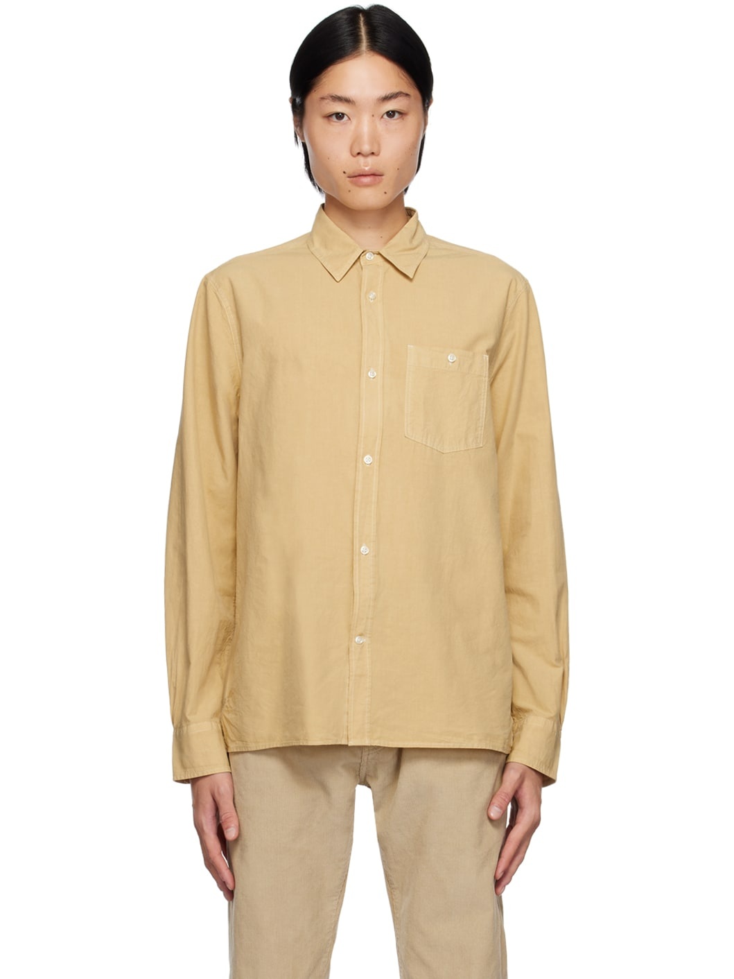Crinkled garment-dyed lyocell- and cotton-blend poplin shirt. · Spread collar · Button closure · Patch pocket at chest · Tennis-tail hem · Single-button barrel cuffs · Contrast stitching in white Supplier color: Dark sand 57% lyocell, 43% cotton. Made in Portugal 241305M192005