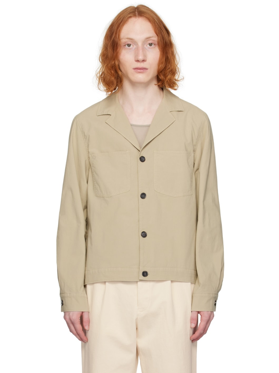 Stretch cotton poplin shirt. · Open spread collar · Button closure · Patch and welt pockets · Single-button barrel cuffs · Modified yoke at back · Partial lining Supplier color: Almond beige Body: 98% cotton, 2% elastane. Lining: 100% polyester. Made in Portugal 241305M192010