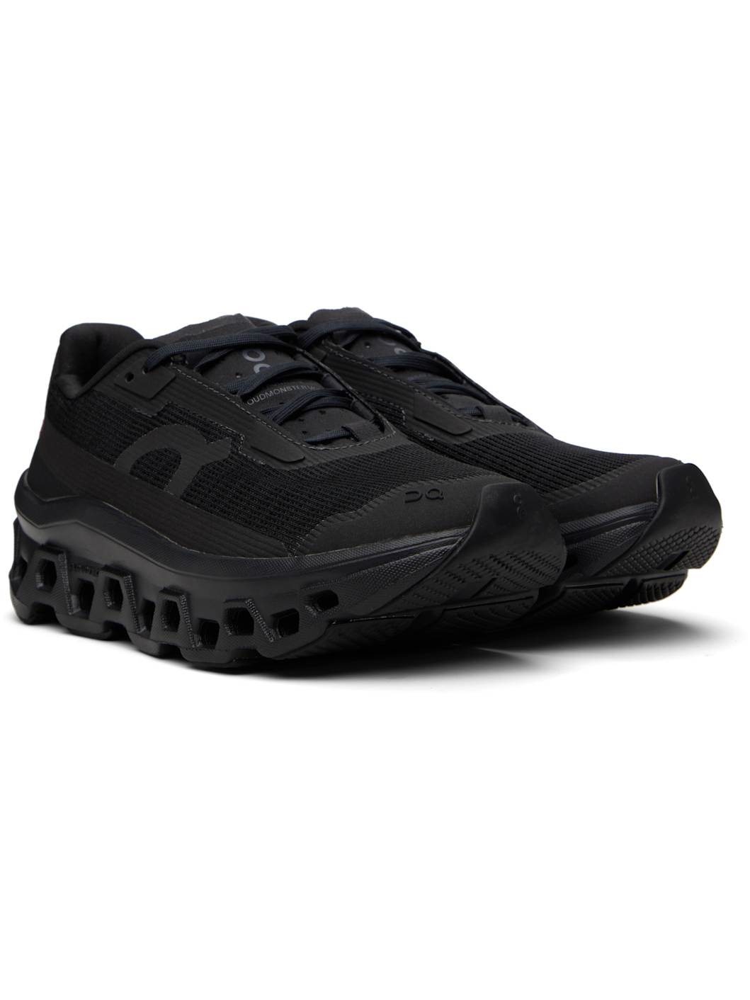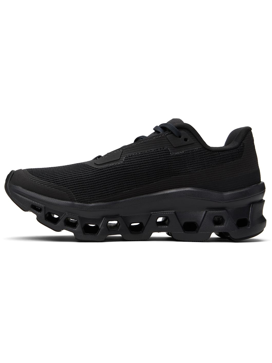 Low-top lightweight recycled mesh sneakers in black. · Logo-embossed rubber cap toe · Lace-up closure · Logo bonded at perforated tongue · Padded collar · Jacquard logo at outer side · Logo embossed at heel · Jersey lining · Cushioned CloudTec® Helion™ foam rubber midsole · Treaded Speedboard® rubber sole Supplier color: Black/Black Upper: textile. Sole: rubber. Made in Viet Nam 251585F128048