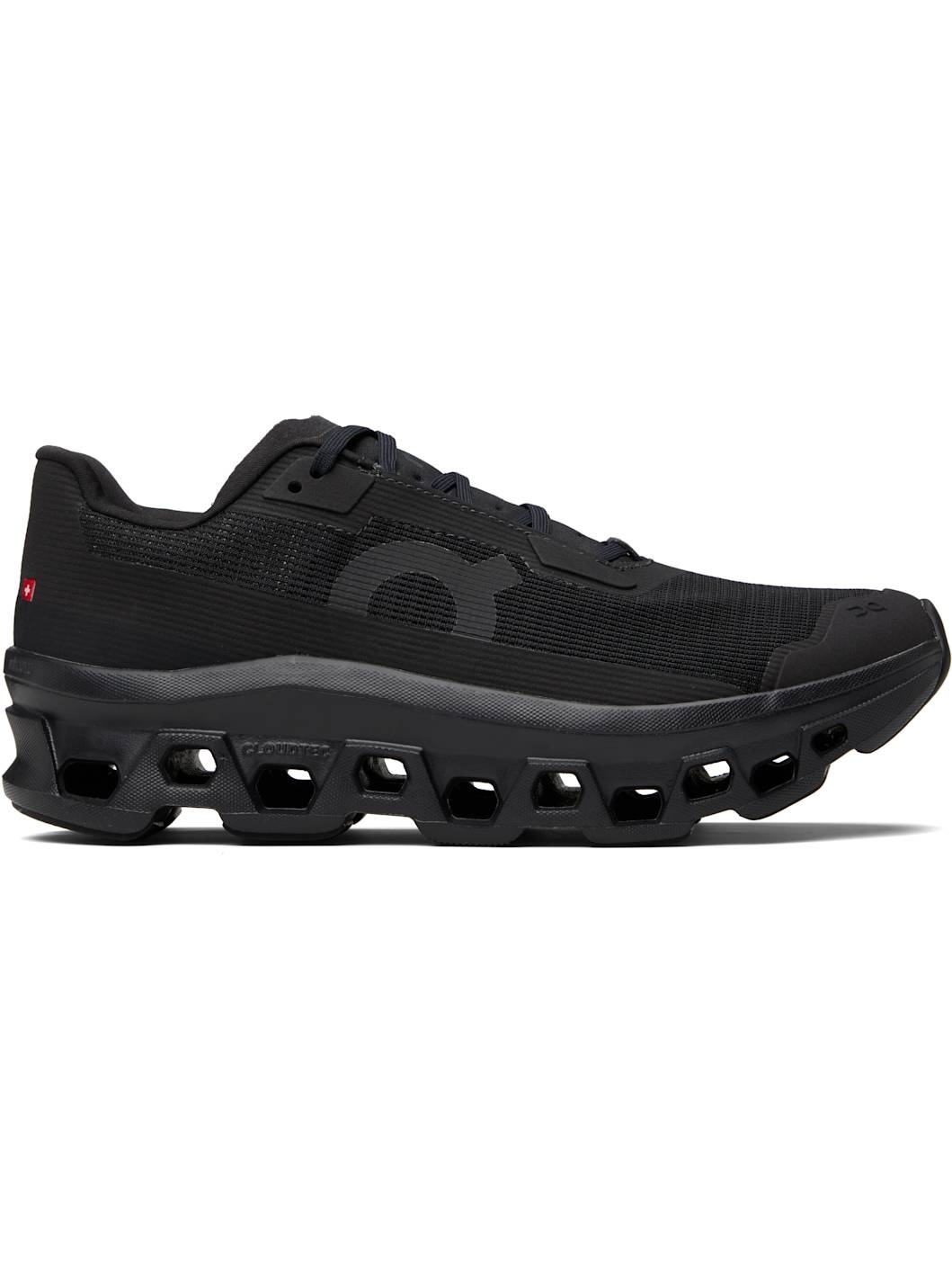 Low-top lightweight recycled mesh sneakers in black. · Logo-embossed rubber cap toe · Lace-up closure · Logo bonded at perforated tongue · Padded collar · Jacquard logo at outer side · Logo embossed at heel · Jersey lining · Cushioned CloudTec® Helion™ foam rubber midsole · Treaded Speedboard® rubber sole Supplier color: Black/Black Upper: textile. Sole: rubber. Made in Viet Nam 251585M237022