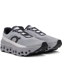 Low-top recycled mesh sneakers in gray. · Reflective logos bonded throughout · Lace-up closure · Padded collar · Logo and text printed at outer side · Logo flag at heel tab · Text embossed at heel counter · Jersey lining · Helion™ foam rubber midsole · Speedboard® at treaded CloudTec® rubber sole Supplier color: Alloy/Silver Upper: textile. Sole: rubber. Made in Viet Nam 251585M237064