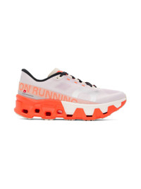 Low-top breathable woven recycled microfibre sneakers in purple and orange. · Logo bonded throughout · Lace-up closure · Perforated detailing at tongue · Padded collar · Jersey lining · Treaded Helion™ HF CloudTec® foam rubber sole Supplier color: Mauve/Flame Upper: textile. Sole: rubber. Made in Viet Nam 241585M237092