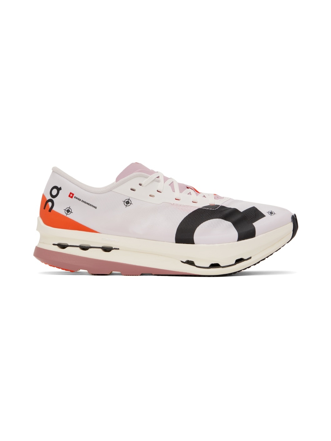 Low-top mesh sneakers in white and tones of pink. · Lightweight and breathable · Bonded trim and logo printed throughout · Lace-up closure · Padded collar · Helion™ HF CloudTec® foam rubber midsole · Treaded Speedboard® rubber sole Supplier color: White/Flame Upper: textile. Sole: rubber. Made in Viet Nam 241585M237051
