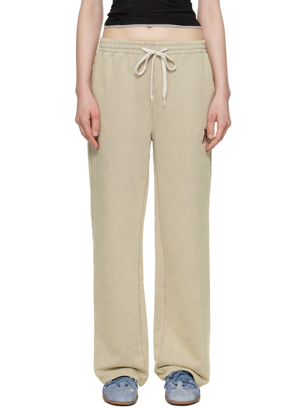 French terry lounge pants. · Drawstring at elasticized waistband · Four-pocket styling · Logo embroidered at front Supplier color: Beige Body: 65% cotton, 35% polyester. Lining: 95% cotton, 5% polyurethane. Made in South Korea 251731F086007