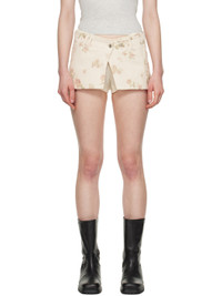 Cotton twill miniskirt. Detachable polyester-blend crepe short-style underlay. · Floral pattern printed throughout · Belt loops · Button fastening at waistband · Two-pocket styling · Leather logo patch at back waistband Supplier color: Beige Body: 100% cotton. Lining: 20% cotton, 80% polyester. Trim: 64% cotton, 33% polyester, 3% polyurethane. Made in South Korea 251731F090000