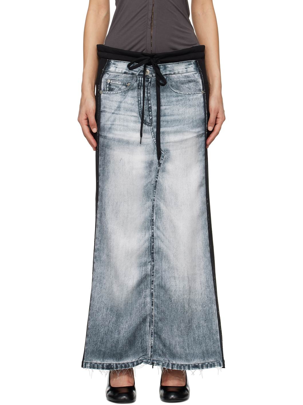 Black & Blue Front Jean Effect Jersey Maxi Skirt