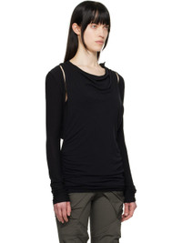 Stretch polyester-blend jersey T-shirt. · Layered construction · Crewneck · Halter strap at hem for alternate styling · Ruching at sides seams · Bolero-style sleeves Supplier color: Black 75% polyester, 20% rayon, 5% polyurethane. Made in South Korea 251731F110003