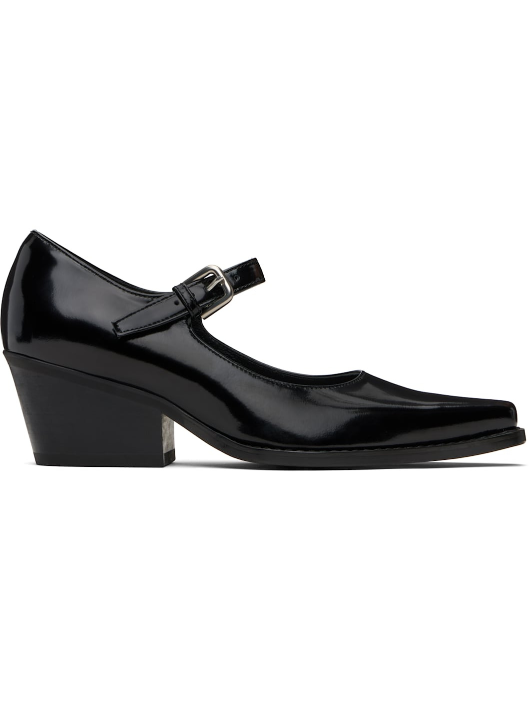 Patent leather Mary Jane-style heels. · Pointed toe · Pin-buckle strap at vamp · Buffed leather lining · Stacked leather heel with rubber injection · Rubber sole · Heel: H2.25" Supplier color: Black Upper: leather. Sole: rubber. Made in South Korea 252731F122000
