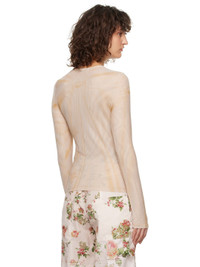 Brown Ribbon Print Mesh Long Sleeve T-shirt
