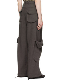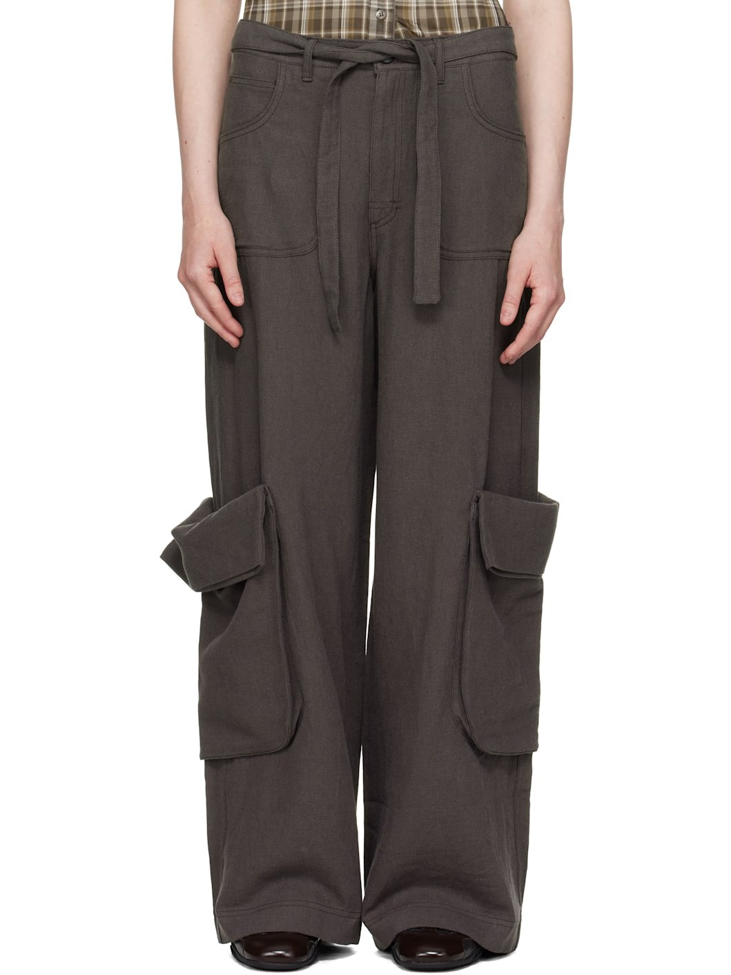 Linen-blend hopsack cargo pants. · Belt loops and integrated self-tie belt · Five-pocket styling · Zip fly · Patch and bellows pocket at outseams Supplier color: Charcoal 55% linen, 23% cotton, 22% rayon. Made in South Korea 251731F087012