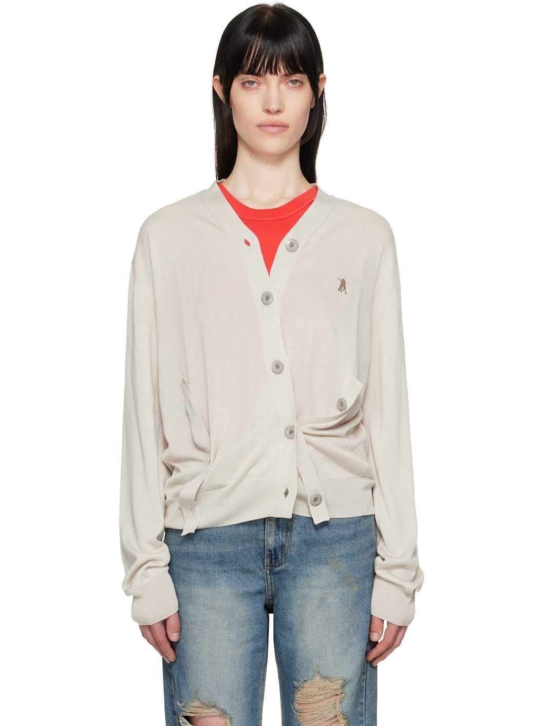 Oversized knit modal- and silk-blend cardigan. - Rib-knit V-neck, hem, and cuffs - Button closure - Logo embroidered at chest - Alternate button closure for twisted styling Supplier color: Gray