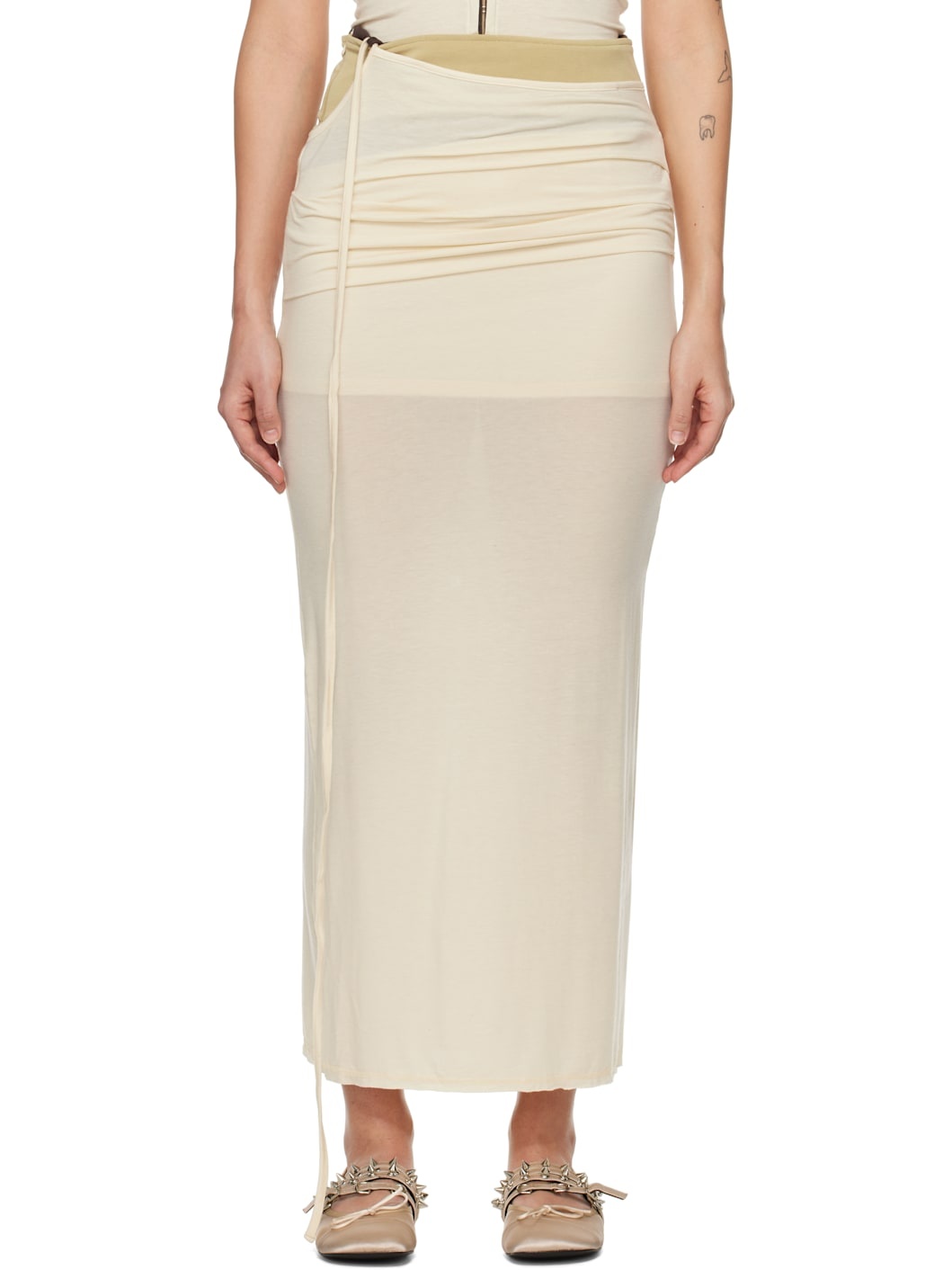 Stretch modal-blend jersey maxi skirt. - Paneled and layered construction - Stretch jersey waistband with self-tie drawstring - Zip closure at side seam - Central vent at back hem Supplier color: Cream