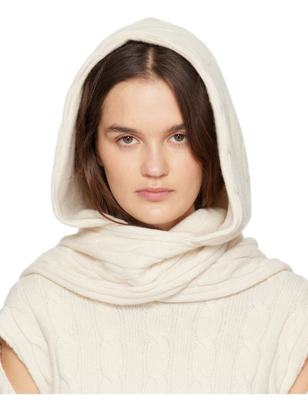 Off-White Convertible Cable Knit Hooded Scarf