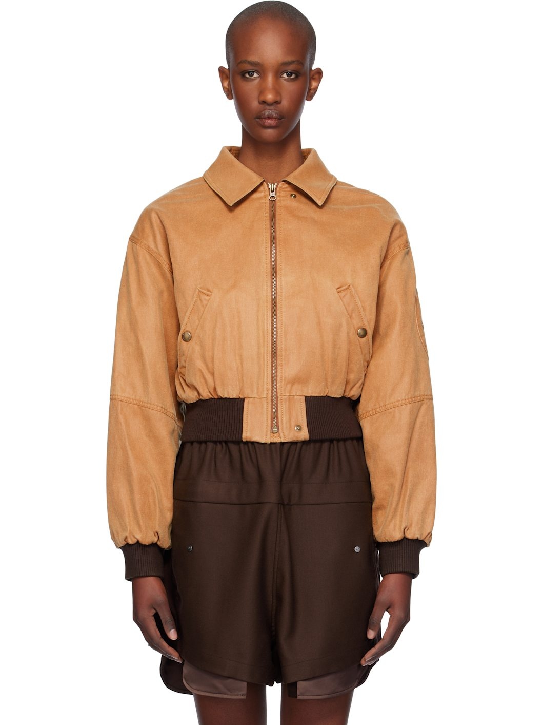 Tan Paper Like Crop Bomber Jacket