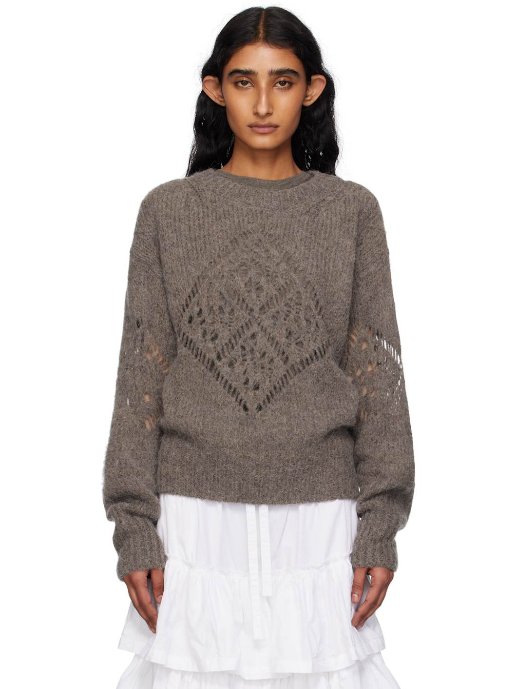 Brushed knit alpaca-blend sweater. · Pointelle-knit argyle graphics throughout · Rib-knit crewneck, hem, and cuffs · Dropped shoulders Supplier color: Mocha 40% alpaca, 35% nylon, 25% acrylic. Made in South Korea 252731F096007